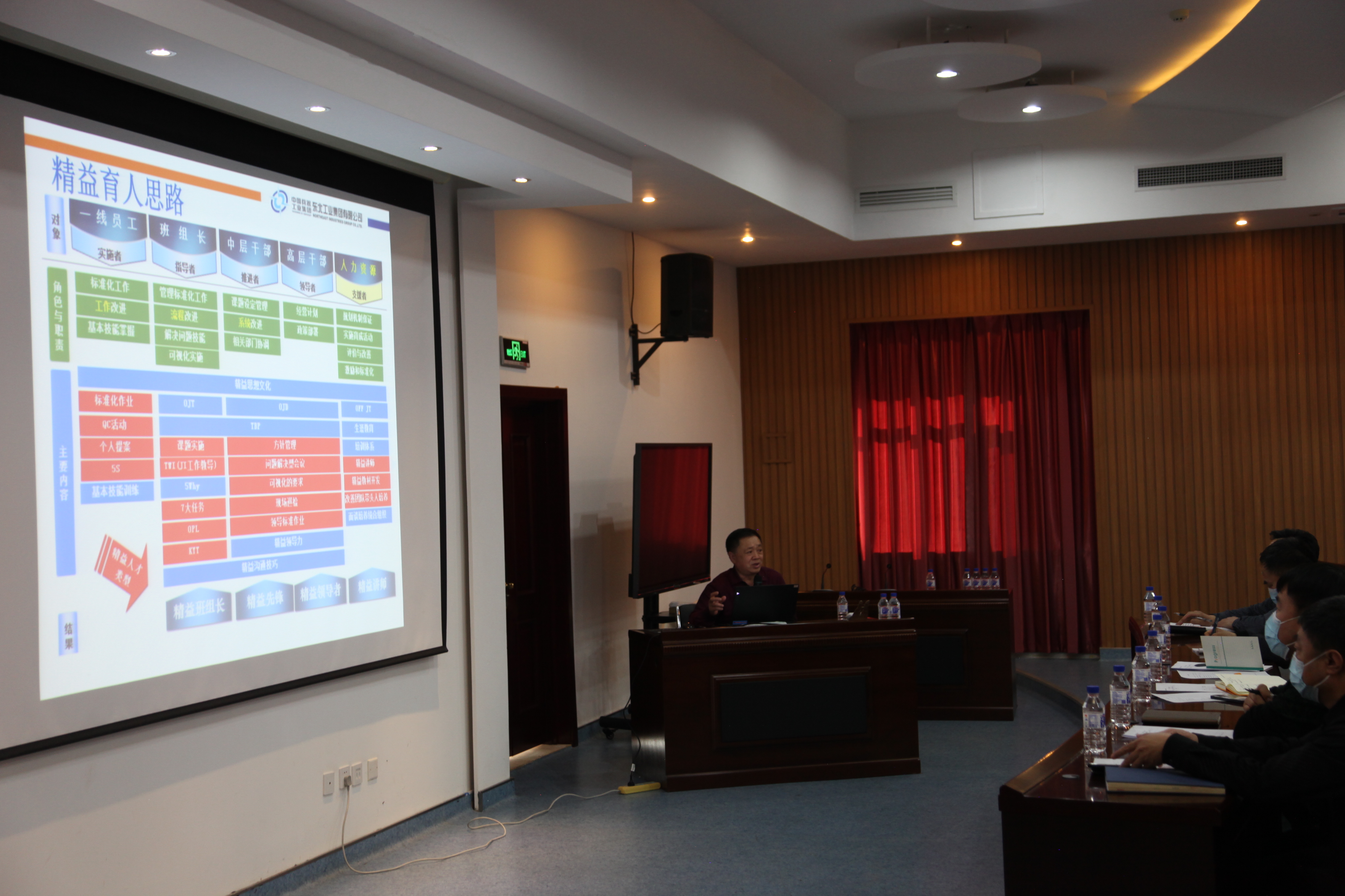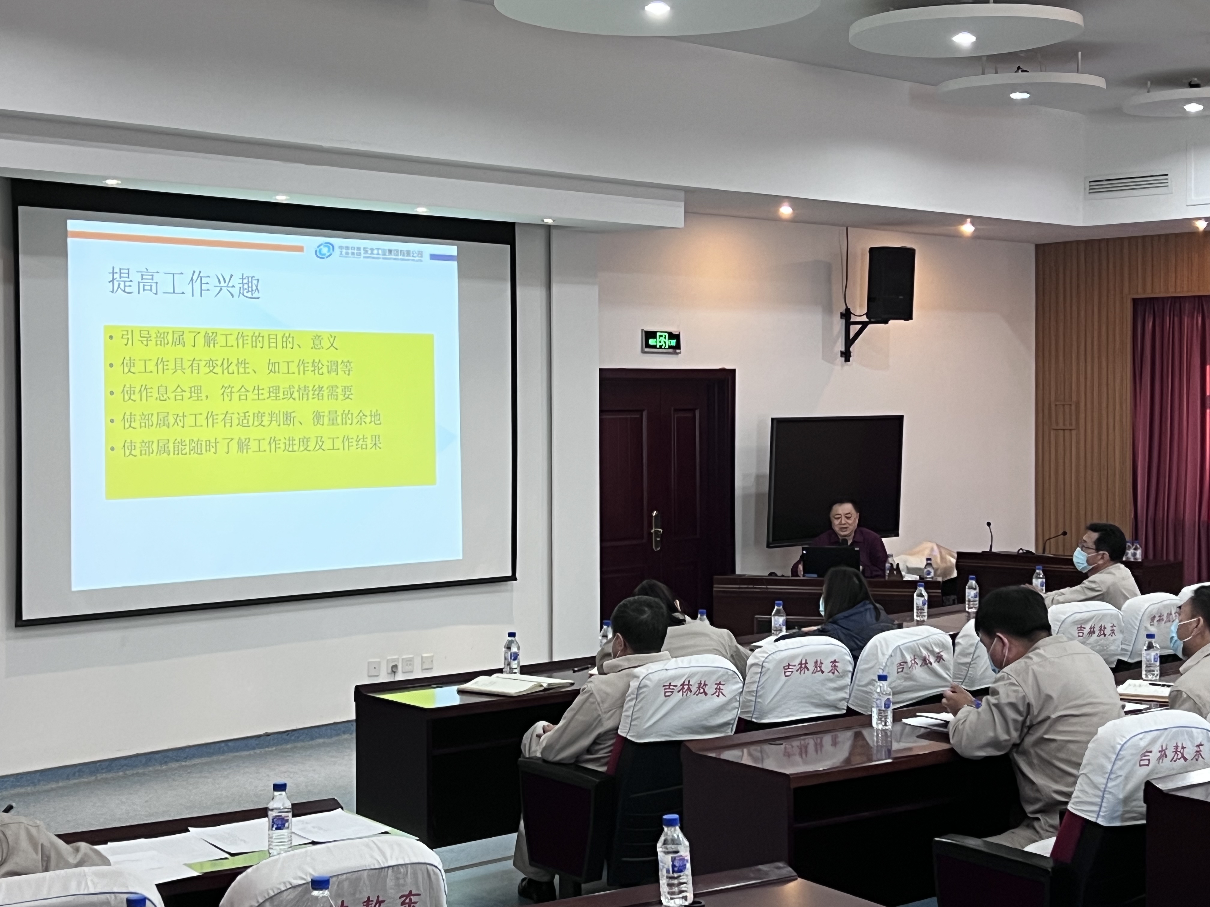 在辦公樓培訓(xùn)室進(jìn)行人才育成培訓(xùn),就如何將崗位員工育成人才給予指引。